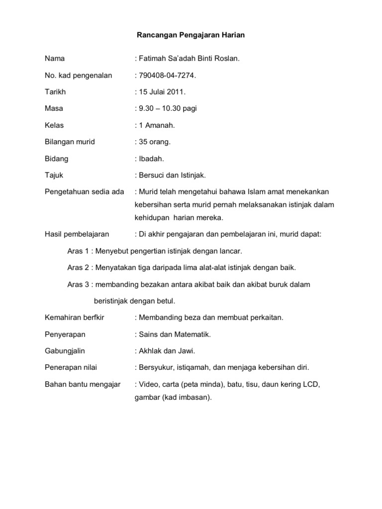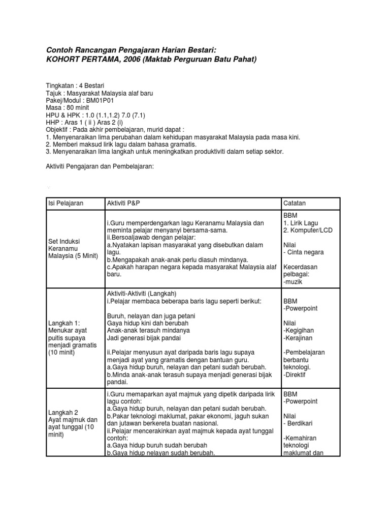 Rancangan Pengajaran Harian Pdf